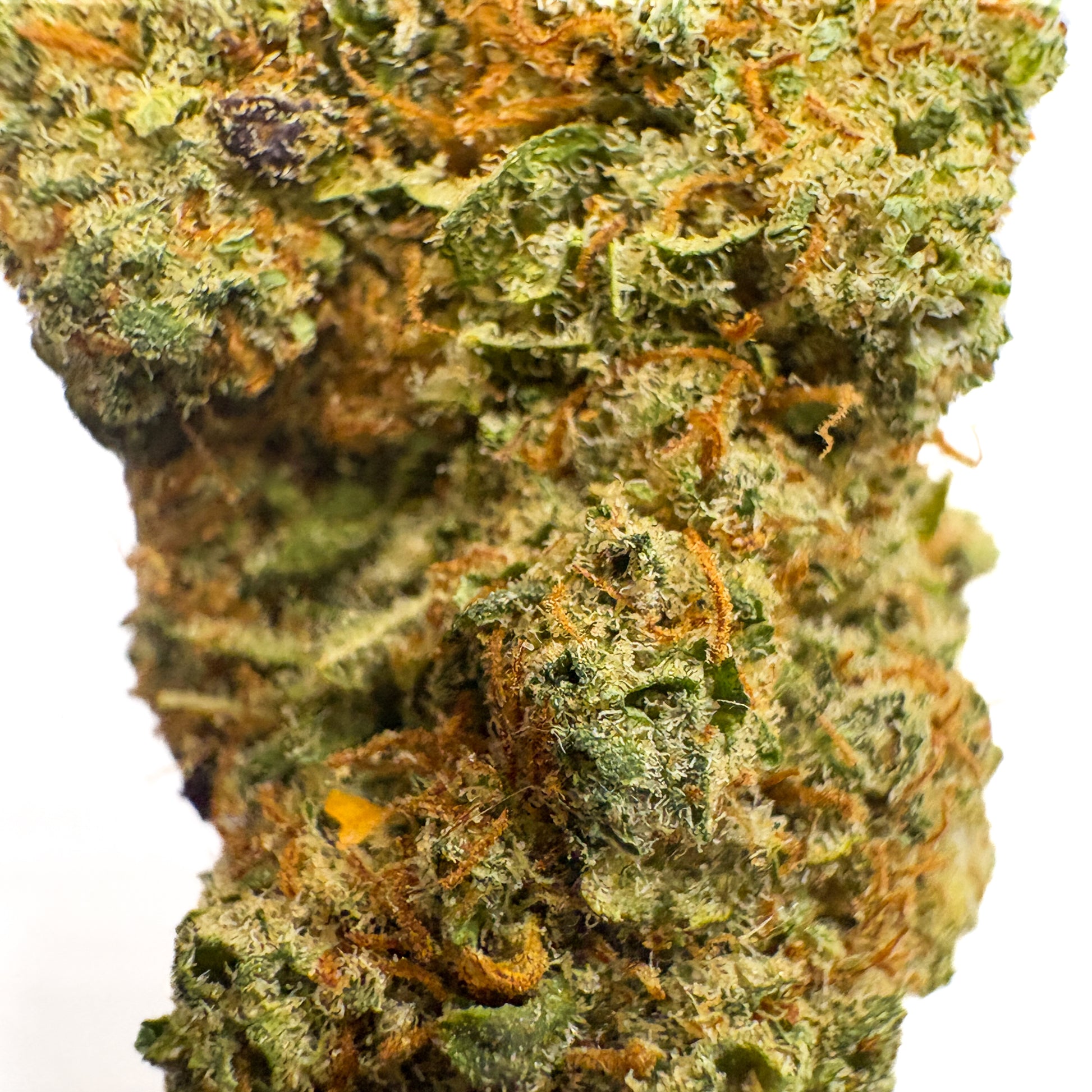 - Appearance: Bright green with vibrant orange hairs and a frosty finish
